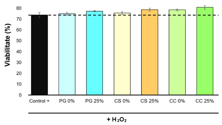 Fig.1 Efectul citoprotector al probelor împotriva a 100 μM H2O2